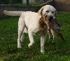 Teès belle femelle jaune de 5 1/2 ans Très jolie tête avec des oreilles bien placées. Dentition correcte. Très bonne couleur des yeux. Superbe poitrine. TB encolure. TB ligne de dos avec une vraie queue de loutre. TB ossature. Se bouge facilement.